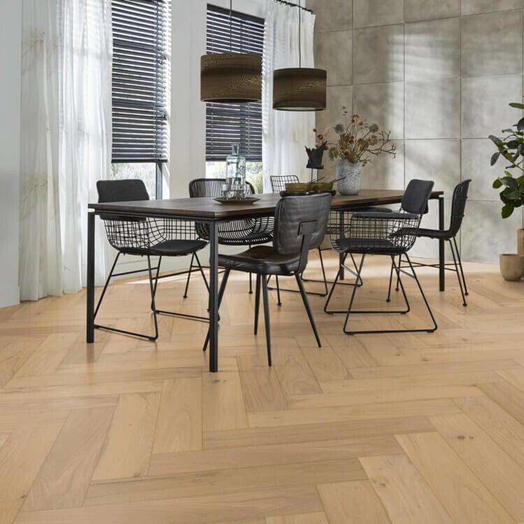 Met een toplaag van 3mm is de Floorlife Beverly Hills enorm sterk in zijn soort. De structuur van de plank valt onder de klasse rustiek A/B, wat betekent dat de vloer een rustiek patroon. Met de Floorlife Beverly Hills stop je de warme en rijke uitstraling van parket in een modern jasje door de vloer in visgraatmotief te leggen.