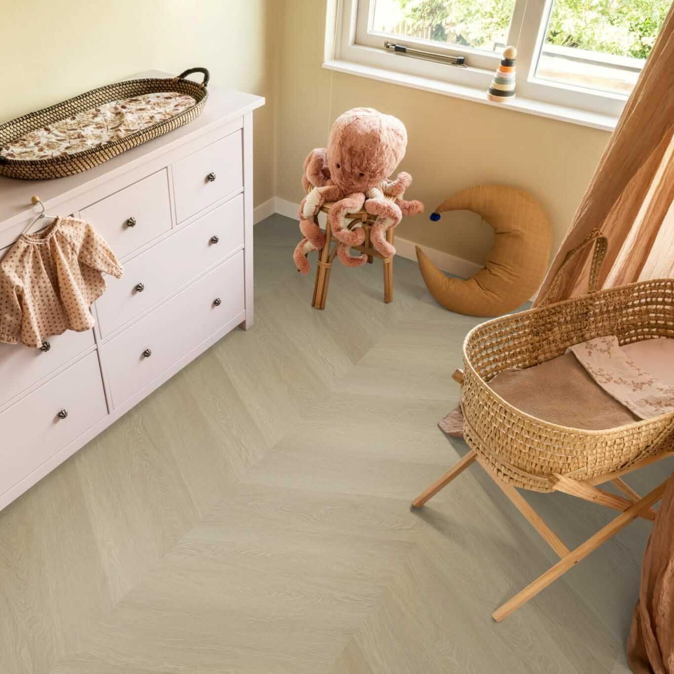 Geef je interieur een elegante upgrade met de Ambiant Spigato Estino Hongaarse Punt Natural Oak. Deze plak PVC vloer combineert het klassieke Hongaarse punt patroon met een natuurlijke eiken uitstraling voor een tijdloze look.