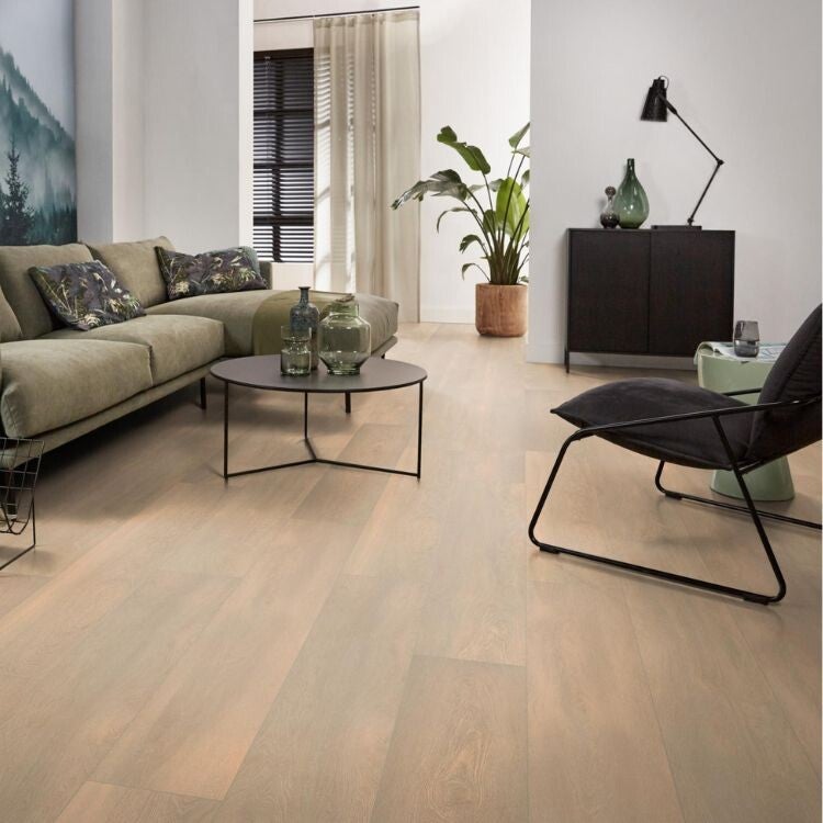 Ontdek de Ambiant Arnstadt laminaatvloer, jouw perfecte keuze voor een interieur vol warmte en stijl. Met zijn prachtige beige eiken houtlook brengt dit laminaat een authentieke sfeer in elke ruimte. Dit slijtvaste laminaat is speciaal ontworpen om de drukte van alledag moeiteloos te doorstaan, waardoor het ideaal is voor zowel intensief als normaal gebruik.