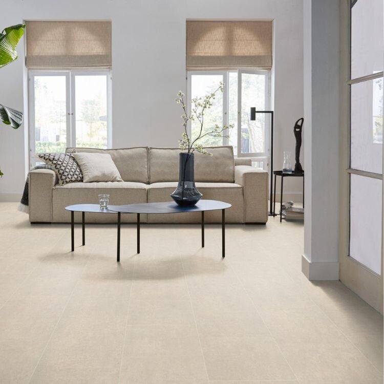 Ontdek de Ambiant Detroit Beton in de trendy Creme variant, een laminaatvloer die kracht en stijl naadloos combineert. Als dé vloerspecialist van Nederland presenteren we je deze sterke, slijtvaste vloer met een authentieke betonlook. Deze prachtige vloer biedt je de perfecte basis voor wie een moderne, robuuste en toch warme sfeer zoekt in huis.